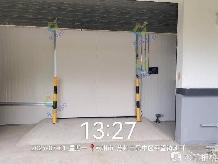 1、庫(kù)房部分:該農(nóng)產(chǎn)品冷庫(kù)的墻體采用雙面0.426彩鋼100mm厚聚氨酯高壓發(fā)泡保溫板,密度40±2kg/m3,阻燃等級(jí)B1級(jí)。配備有單開(kāi)手拉平移門,該門為雙面彩鋼聚氨酯保溫門,冷庫(kù)門帶防結(jié)露電加熱高抗凍熟料密封條,帶安全脫鎖裝置。與門聯(lián)動(dòng)配備有風(fēng)幕機(jī)以及設(shè)有PVC門簾,防止熱能進(jìn)入。地面鋪設(shè)50mm厚XPS擠塑板兩層交錯(cuò)壓縫鋪設(shè),共100mm厚,阻燃等級(jí)B2級(jí)。擠塑板上下兩層鋪設(shè)PE隔汽膜,最后鋪設(shè)100mm厚鋼筋混凝土地坪(含門口斜坡)。此外,采用頂部T型鋁吊梁用于冷庫(kù)頂板加固,還配備有絲桿、密封硅膠等安裝輔料。